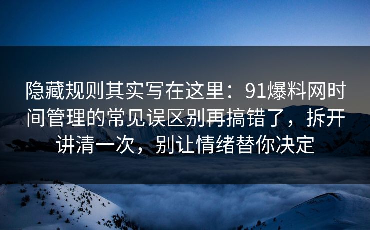 隐藏规则其实写在这里:91爆料网时间管理的常见误区别再搞错了,拆开讲清一次,别让情绪替你决定