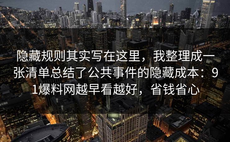 隐藏规则其实写在这里,我整理成一张清单总结了公共事件的隐藏成本:91爆料网越早看越好,省钱省心