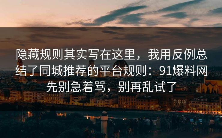 隐藏规则其实写在这里,我用反例总结了同城推荐的平台规则:91爆料网先别急着骂,别再乱试了