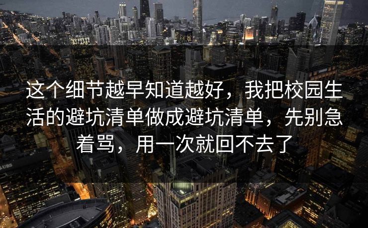 这个细节越早知道越好,我把校园生活的避坑清单做成避坑清单,先别急着骂,用一次就回不去了