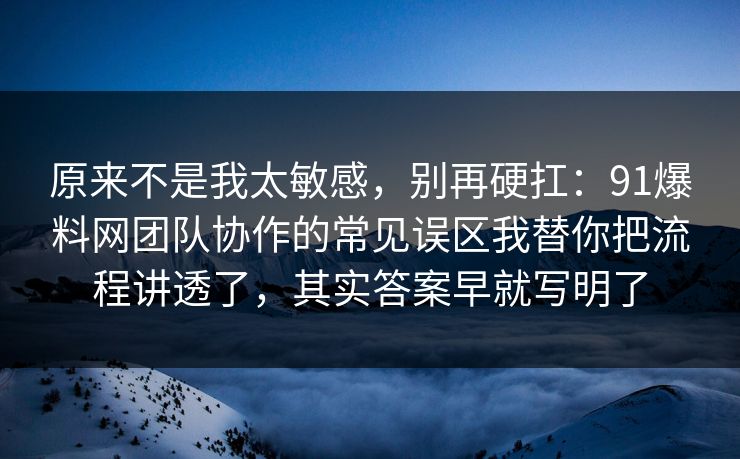 原来不是我太敏感,别再硬扛:91爆料网团队协作的常见误区我替你把流程讲透了,其实答案早就写明了