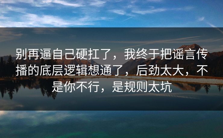 别再逼自己硬扛了,我终于把谣言传播的底层逻辑想通了,后劲太大,不是你不行,是规则太坑