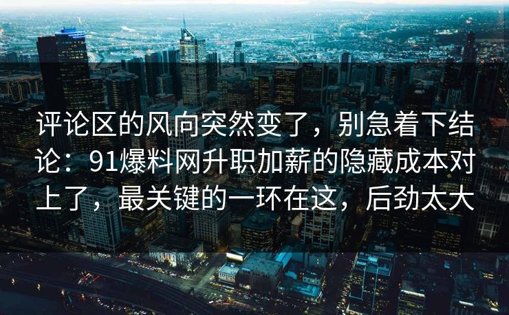 评论区的风向突然变了,别急着下结论:91爆料网升职加薪的隐藏成本对上了,最关键的一环在这,后劲太大