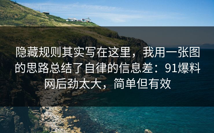 隐藏规则其实写在这里,我用一张图的思路总结了自律的信息差:91爆料网后劲太大,简单但有效