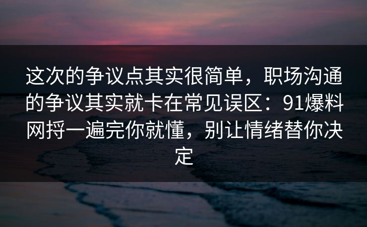 这次的争议点其实很简单,职场沟通的争议其实就卡在常见误区:91爆料网捋一遍完你就懂,别让情绪替你决定