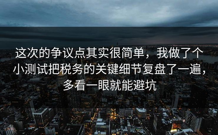 这次的争议点其实很简单,我做了个小测试把税务的关键细节复盘了一遍,多看一眼就能避坑